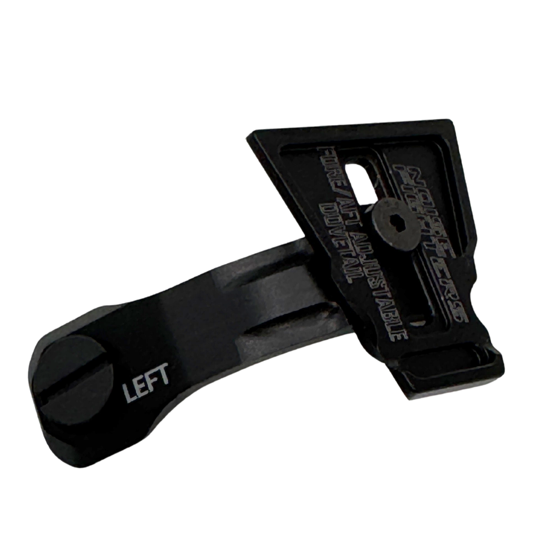 Left or right side quick detach (male) dovetail arm with sliding fore/aft adjustability for PVS-14 monocular mounting on bridges with female QD dovetail mounts installed (such as our metal QD adapter mount for Panobridge). This product allows the eyepiece of the PVS-14 to be positioned so that it will properly line up with any thermal monocular by simply loosening the included screw. Made 100% in the USA out of 7075-T6 hardcoat anodized aluminum.
