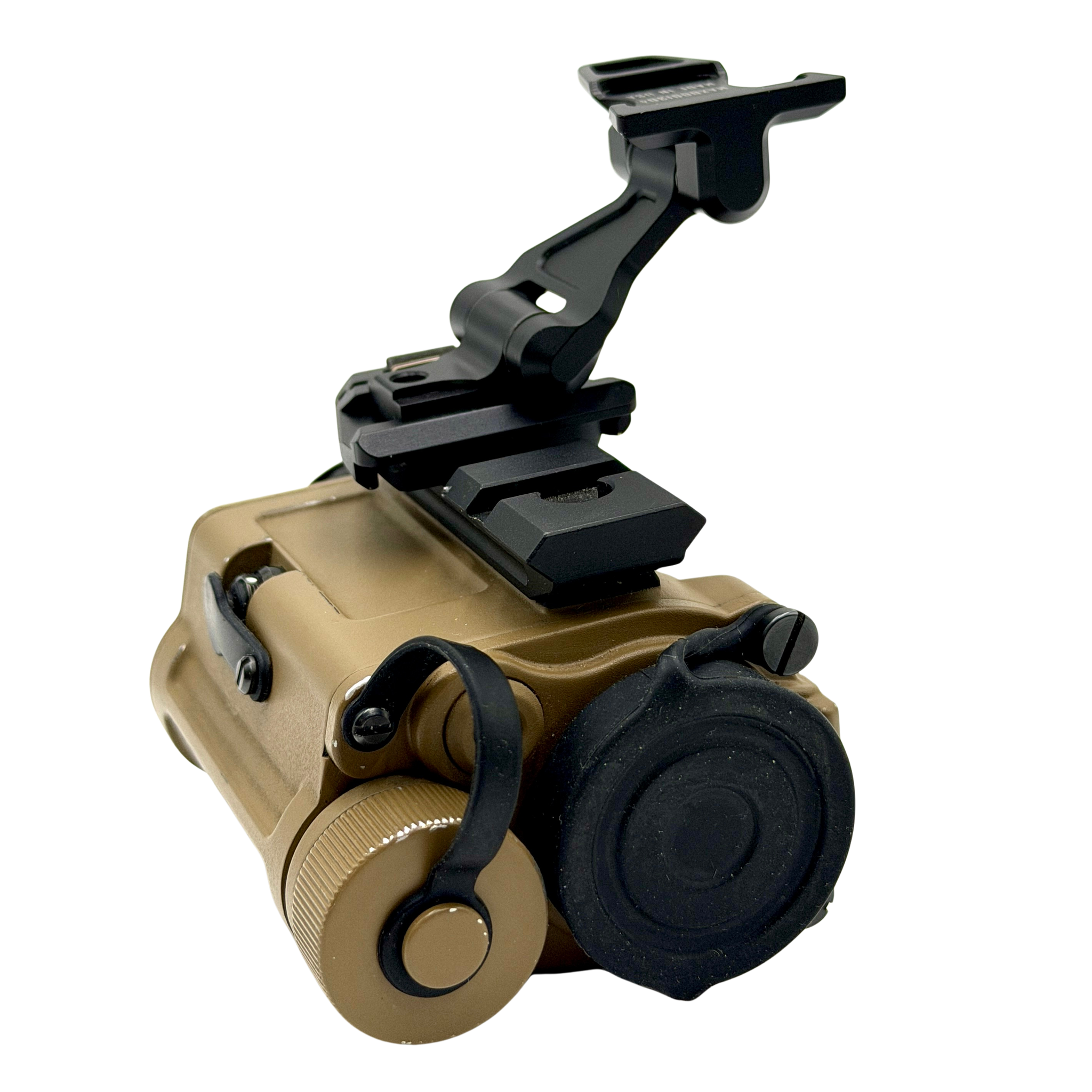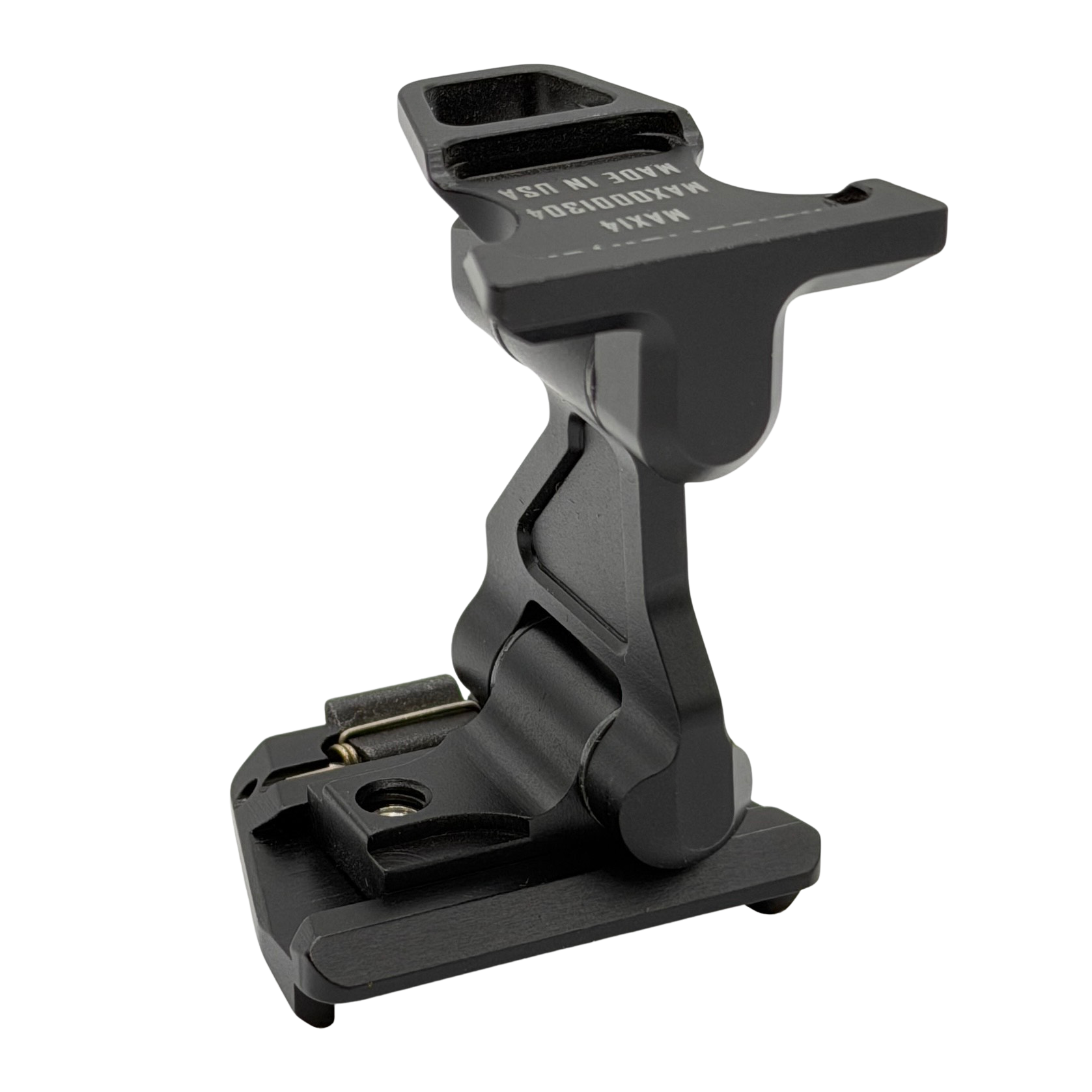 DMAX14™ is a rigid, incredibly lightweight, and all-metal night vision J-arm for dovetail-equipped thermal monoculars such as the Infiray RH25 and Trijicon SkeetIR. It includes a rotating knuckle which provides a tight stow against the helmet and also allows the monocular to be temporarily swung away from the eye. At 1.3 oz total, it weighs less than a polymer milspec J-Arm, yet its structure is composed entirely of the highest-performing 7075-T6 aluminum alloy for industry-leading durability.